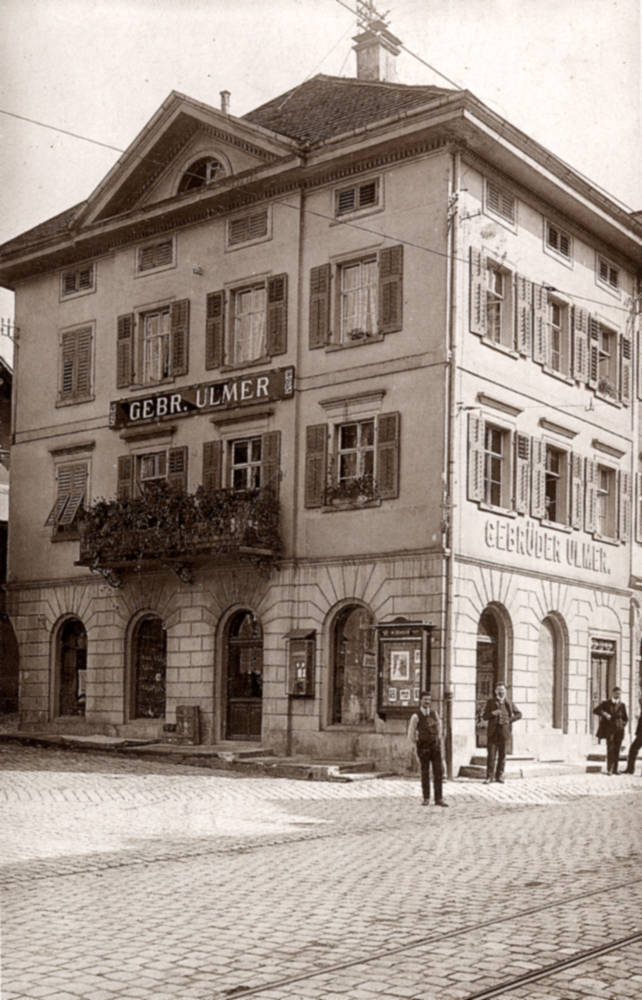 Mit dem Kauf des Hauses Marktstraße 1 im Jahre 1871 gründete Franz Anton Ulmer zusammen mit seinem Bruder Heinrich die Eisenhandlung „Gebrüder Ulmer“. Trotz des frühen Tods der beiden Gründer konnten die Nachfolger Karl Friedrich und Johann Rudolf Ulmer die Firma über die schwierigen Jahre des Ersten Weltkriegs und der Nachkriegszeit bringen. 1925 tritt Fritz Hillinger, ein aus Salzburg gebürtiger Eisenhändler in die Firma ein.